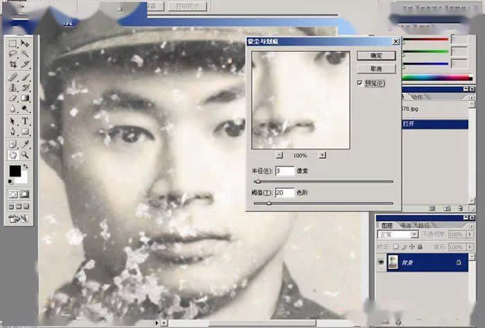 2.用滤镜中的蒙尘与划痕处理掉较小的脏点